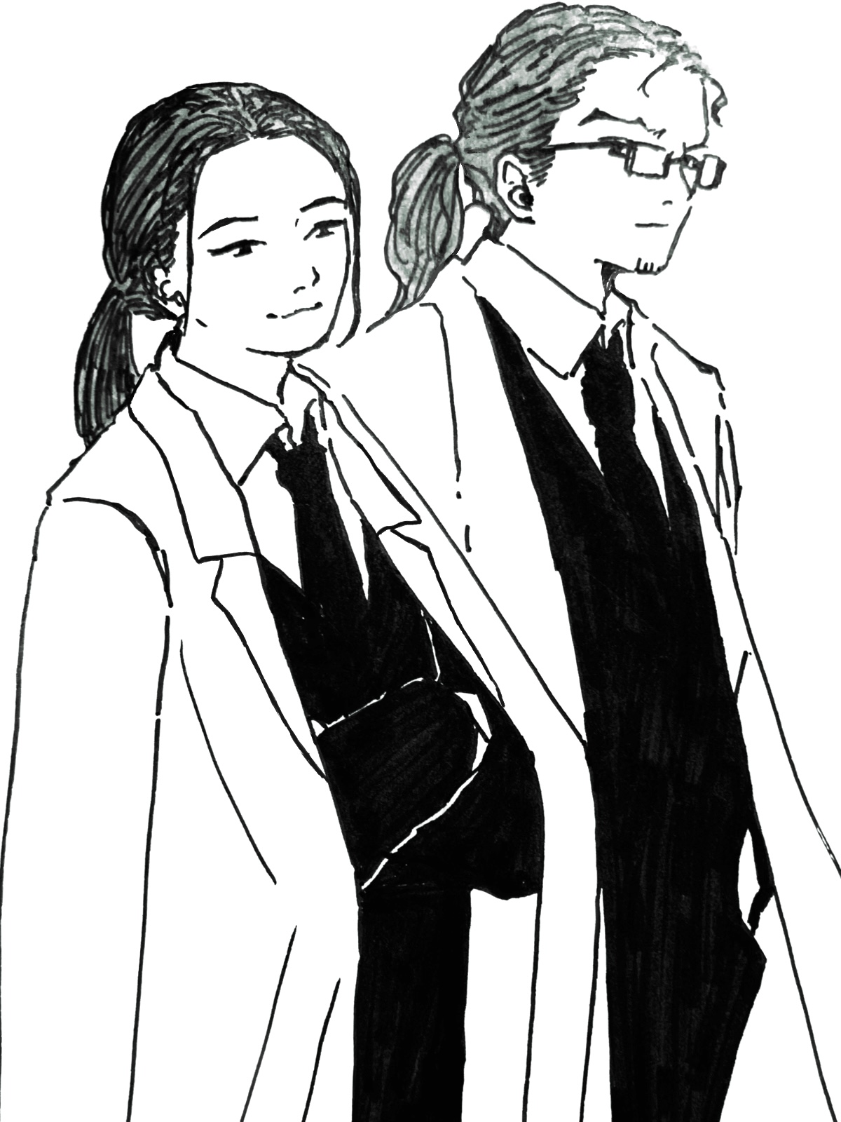 初朗と署長 2024/06/19 下の絵描いてた頃は曖昧だった人体の理解が進んでいるのを感じる。 顎、耳の下あたりの骨、頬骨、目まわり(堀り)、横顔のときの頬の見え方とか 急にわかった。 2023/10/18 とってもなかよし。 #極東新しい国